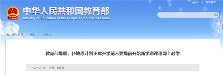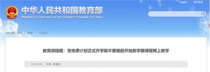 教育部网站2月4日发布公告称:当前,全国上下正万众一心、众志成城,团结奋战抗击新型冠状病毒感染肺炎疫情,教育部专门发通知要求2020年春季延期开学,阻断疫情向校园蔓延。为保证防控疫情期间中小学校 “停课不停学”,各地教育行政部门、中小学和一些校外培训机构按学校正常教学计划积极提供免费线上课程,为中小学生如期学习提供了便利条件。