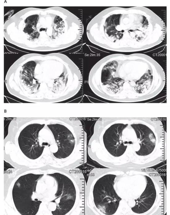 肺部CT异常是本次新型冠状病毒肺炎最典型的影像学表现。在41例患者中,有40例出现双侧肺叶受累,重症患者肺部CT的典型表现为双侧多小叶和亚段实质性病变,轻症患者的代表性CT表现为双侧节段性毛玻璃样变。