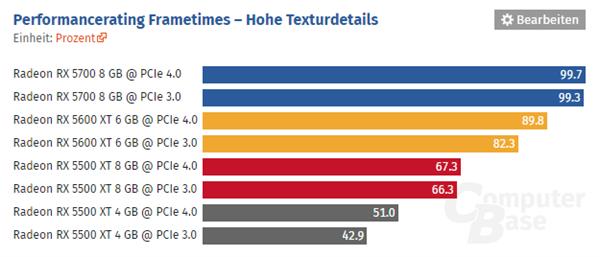 不过这个优势能够表现出来的前提就比较麻烦了,因为PCIe 4.0的两倍带宽只有在显存容量受限的情况下才会展示出来的,这也就是为什么RX 5500 XT 4GB及RX 5600 XT才有性能提升的原因。