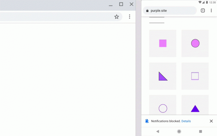 3、更安静的消息通知。网页请求发送通知权限时,横幅或者弹窗通知会以更安静、更低调的方式呈现,而不再像原来那样在网页中间或顶部/底部占用空间。