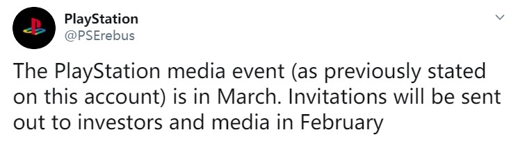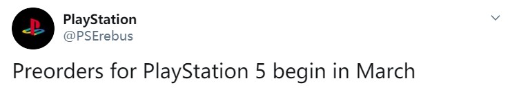 据知名爆料人PSErebus发布的推特显示,PS5发布会将在下个月举行,并且也会在3月开启预售,PSErebus之前曾经成功预测了。《 最后的生还者2》的初始发售日期将在今年2月,但是由于游戏跳票到5月29日发售,预测就没有那么成功了。之前他还预测PS5将在今年11月20日发售,售价499美元。