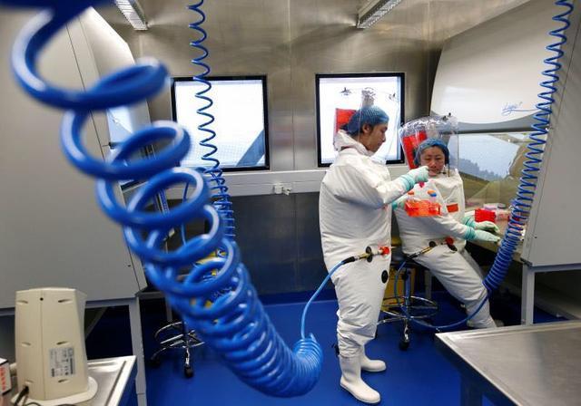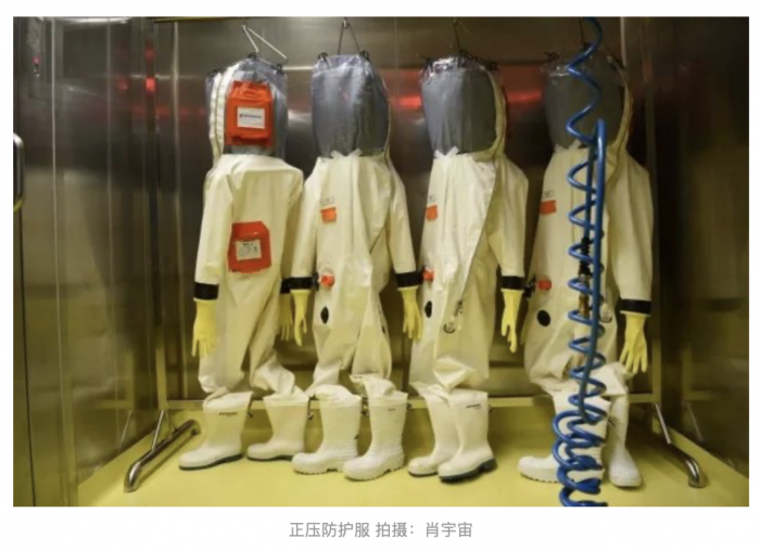“P4实验室”在安全等级方面有极高极高极高的特殊要求。工作人员在P4实验室,类似宇航员在太空舱里。