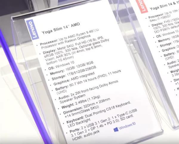 在联想的一款Slim 14笔记本宣传视频,网友发现了不同的地方,其处理器型号中写的是锐龙9 4900U,这个型号不在CES发布的锐龙4000 U系列处理器名单中。