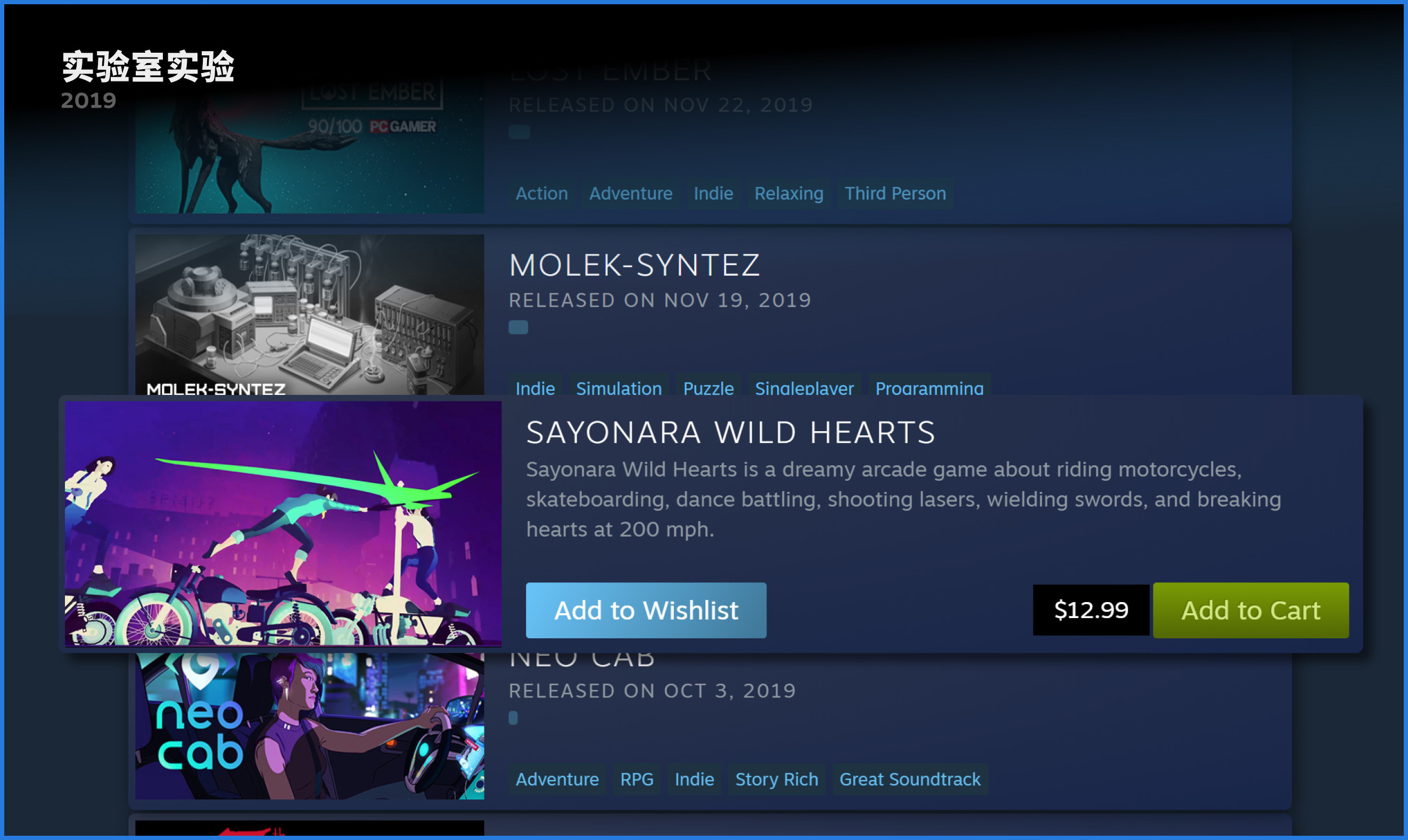 另一项于 2019 实行的新举措重点突出每个月的 Steam 最热新品(首份榜单发布于 4 月,接着在 5 月、6 月、7 月、8 月、9 月、10 月、11 月以及 12 月持续推出)。 以前我们只会在年终创建这样的榜单,例如“2019 年度最佳回顾”博客文章中所列,但是这样的分类榜单能囊括的游戏实在有限。 虽然商店有几个不同版本的“新品”栏目,但是这些列表总体上只梳理了过去 24 小时的数据。 这些列表对于定期访问商店的用户而言很有用,但对于不那么频繁来到商店的顾客则稍显不足。 有了这些每月发布的文章和特卖页面,我们就能够让人们对这些已经吸引了 Steam 社区的更多新游戏在更长时间内保持关注。 这些榜单中一些知名度较低的作品在上榜后的几天内,相关的愿望单活动就有了 50% 的增长。
