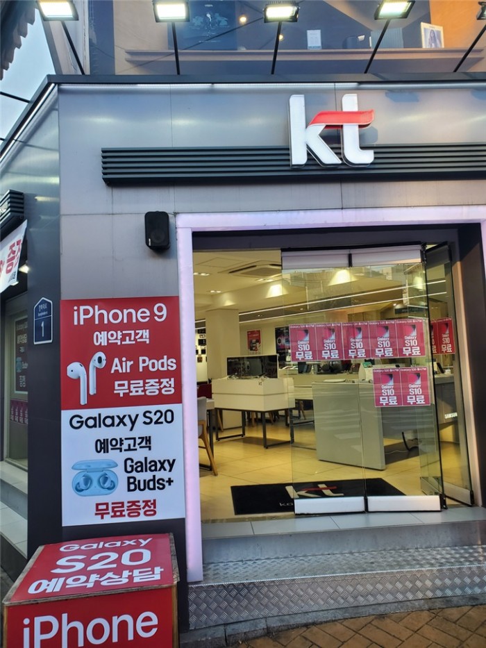 韩国电信(KT)某零售门店已经现已开启预约 Galaxy S20 系列送 Galaxy Buds+ 活动。而在门店宣传海报上竟然还出现了苹果 iPhone 9 的预约信息。在该门店的预约 Galaxy S20 系列送 Galaxy Buds+ 海报中赫然出现了同样的预约 iPhone 9 送 AirPods 的信息。