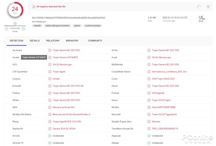 ·看报毒率。这个很好理解,如果绝大多数杀软都报毒,那它可能不安全;如果只有少数报毒,那文件可能值得信任。