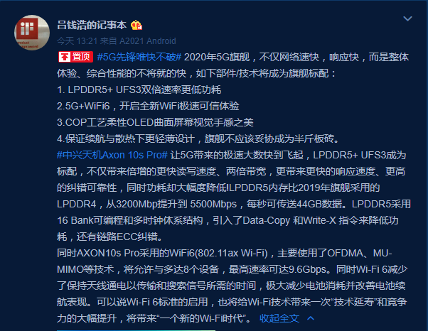 今天“LPDDR5”成为微博热词。2月6日消息,中兴吕钱浩为AXON 10s Pro预热。吕钱浩表示,中兴AXON 10s Pro标配LPDDR5内存及UFS 3.0闪存。它不仅带来倍增的更快读写速度、两倍带宽,更带来更快的响应速度、更高的纠错可靠性,同时功耗却大幅度降低。