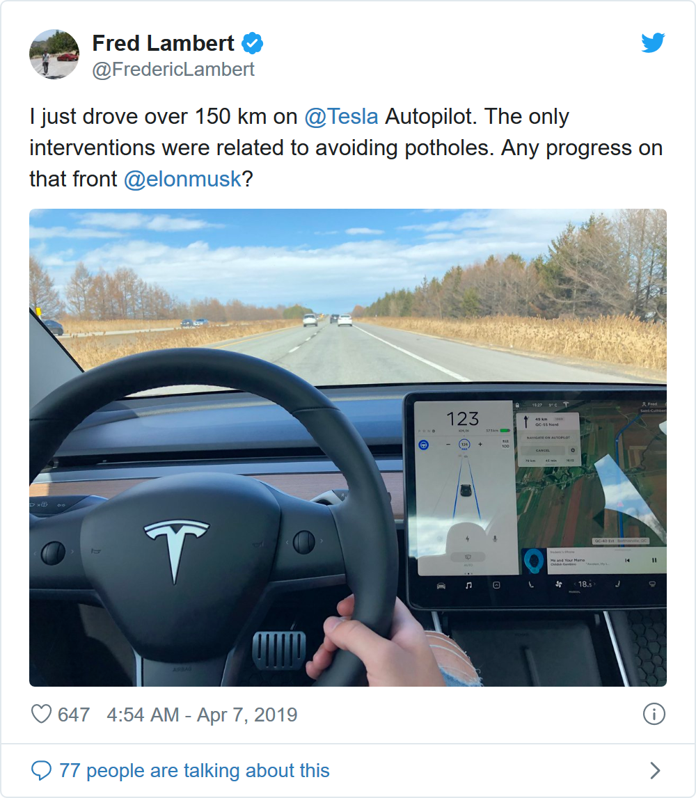 这意味着特斯拉汽车可以绘制路面坑洼地图从而帮助其他特斯拉汽车避开这些地方。