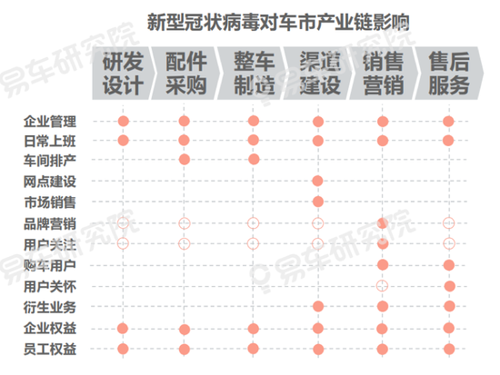 易车研究院发布《2020年肺炎疫情对车市冲击洞察报告》。 报告分析,“新冠”疫情之后中国车市可能加速下滑。易车表示,受影响较大的汽车行业主要涉及零部件、车企、经销商、终端购车群体等,可能带来管理效率降低、车间排产紊乱、网点拓展推迟、市场营销减缓、市场销量下滑等多重负面影响。