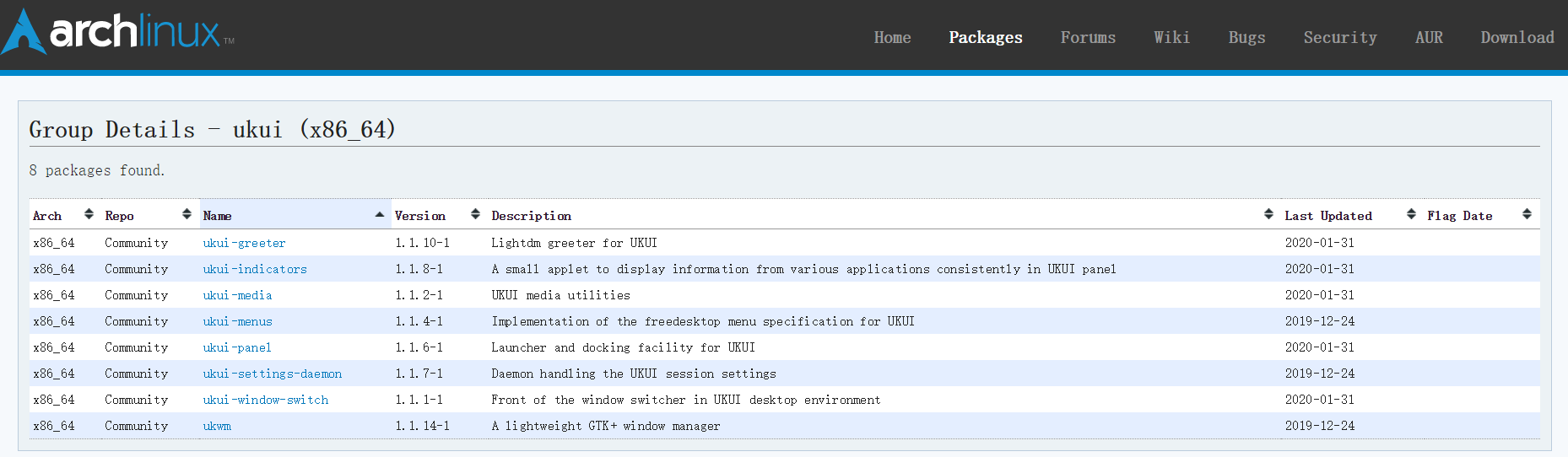 https://www.archlinux.org/groups/x86_64/ukui