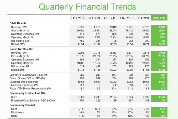 希捷公司日前发布了截至1月3日的2020财年Q2财报,当季营收26.96亿美元,同比下滑0.7%,环比增长了4.6%,净利润3.18亿美元,同比下滑17%,环比增长59%。跟西数不同,希捷主要收入还是HDD硬盘。上季度中HDD硬盘业务贡献了24.82亿美元的营收,SSD等产品贡献的营收只有2.15亿美元,这一年多来变化不大。