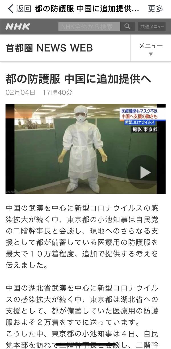 日本媒体此前报道再向中国捐赠10万套防护服意愿