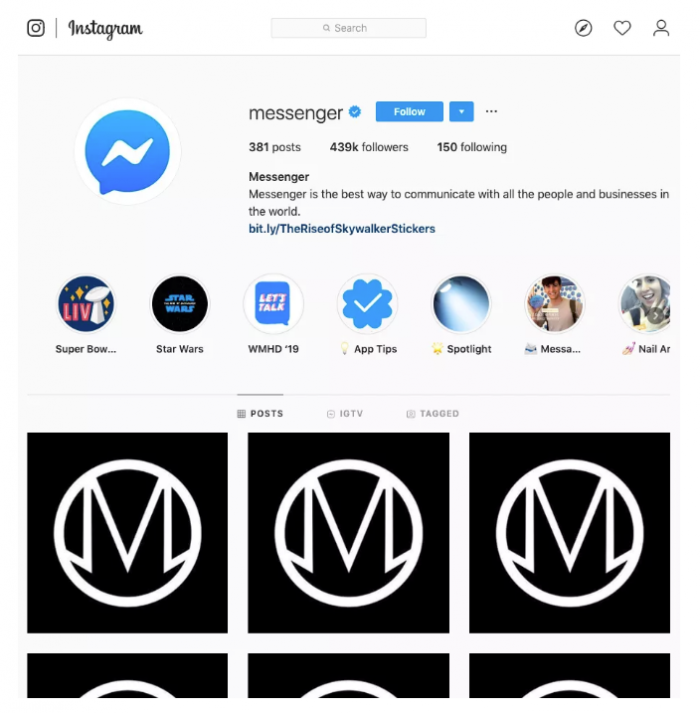 OurMine还似乎劫持了Facebook和Messenger 的官方Instagram帐户:
