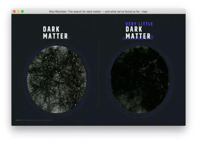 图4:宇宙中存在(左)和几乎没有暗物质(右)时,计算宇宙学家们预言的宇宙中的质量分布,亮点代表高密度区域,即星系和星系团形成的区域。 图片来源:https://www.ted.com/talks/risa_wechsler_the_search_for_dark_matter_and_what_we_ve_found_so_far?language=en