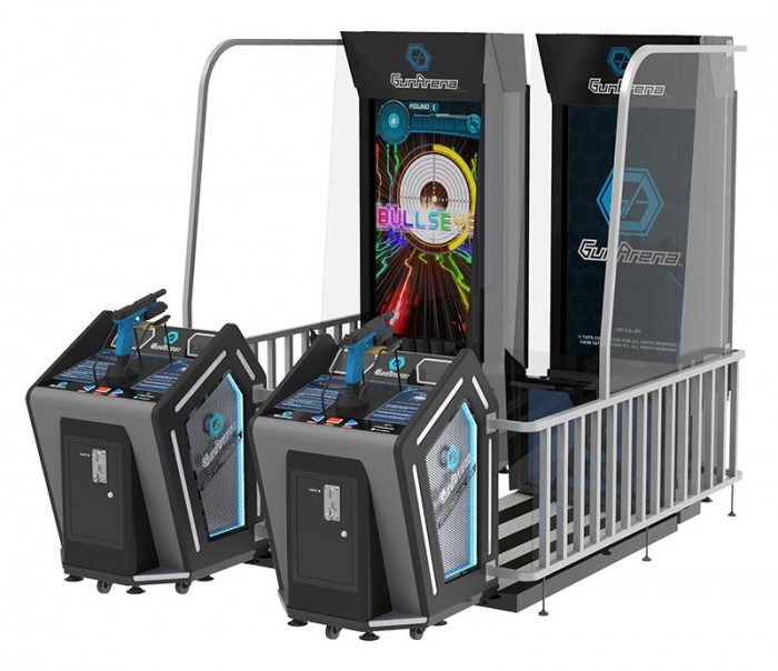 ·该《GUN ARENA》街机筐体巨大,搭载自动填充子弹和充气系统的空气枪,玩家需要穿戴防护眼镜等才能游玩,目前《GUN ARENA》的具体上市运营时间未定。