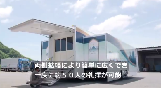 ·该移动礼拜车为大型可扩展房车结构,全部扩展后可一次同时容纳50名教徒做礼拜,而车内还配置了清洗水槽以供教徒净体,届时东京奥运会期间将免费投入运营。