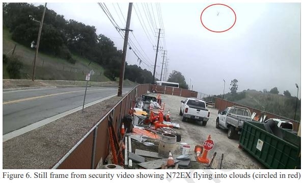 101公路监控录像截图,可见科比的直升机(红圈内)向西飞入云中: