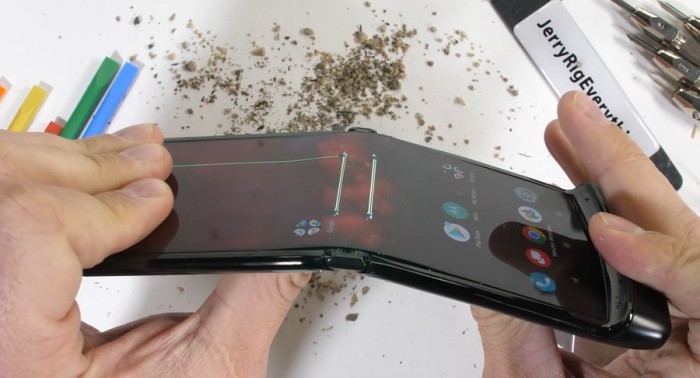 以90年代经典Razr手机为原型,摩托罗拉在去年11月推出了首款可折叠手机Razr 2019。在外媒CNET发现2.7万次(官方标称20万次)就出现问题,今天知名数码频道JerryRigEverything对Razr 2019进行了耐用性测试,从结果来看耐用性依然不是很好。