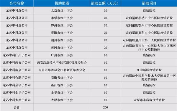 为了对抗一场突如其来的疫情危机,全国各个行业的公司都在行动。中科龙芯日前宣布,总公司及各子公司通过红十字会等渠道分别向北京、湖北、广州、西安、南京、安徽、浙江、金华、太原捐助共计200万元,用于疫情防控工作。