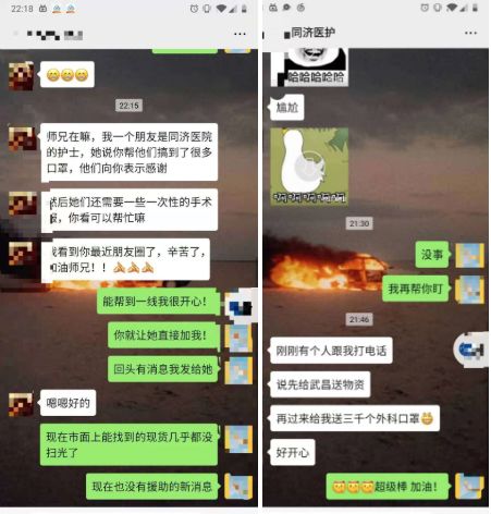 在整个对接过程中,最令老白印象深刻的是一位来自湖北中西医结合医院的护士。她加了志愿者微信,她说:“代表我个人,恳求你给我一些防护服和口罩,虽然我不怕死,但我不想“裸奔”的去死,这样的死没有意义。”她发了所在医院名称、科室、姓名、电话,说了一句“拜托了”。