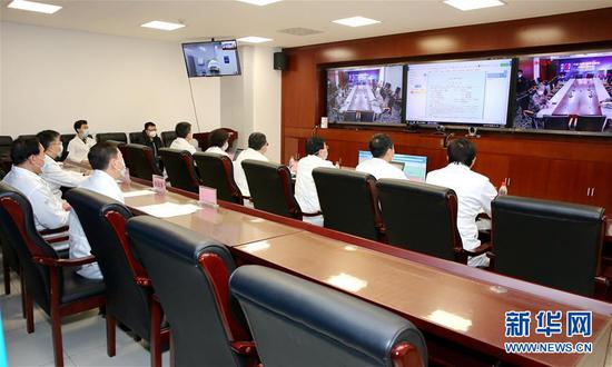 2月9日,解放军总医院和火神山医院开展首次5G网络远程会诊。 新华社发(孔令占 摄)
