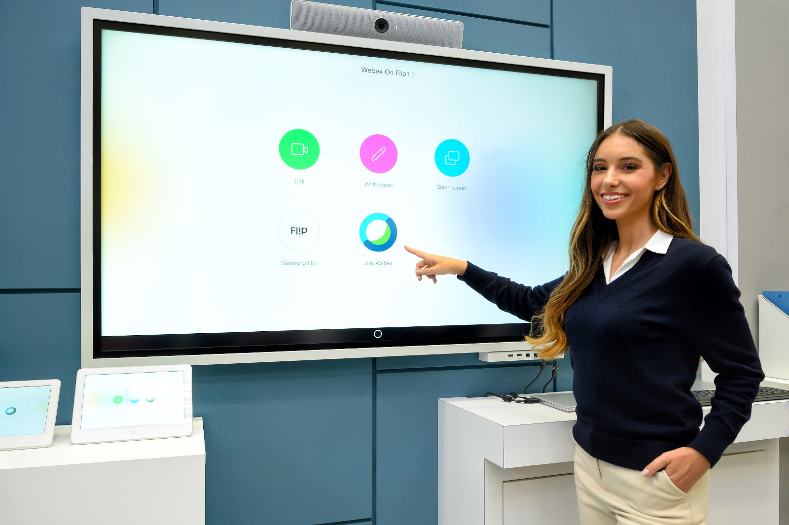 最后要展示的设备是三星Flip 2,这是一种数字活动挂图,广泛用于公司,教育,创意和零售。此版本保留了首款Samsung Flip的最佳功能,但带来了增强的设计和一些新功能,允许更好的协作、共享和创造性思维。三星与思科合作,将Webex引入Flip 2。Webex允许双向白板,支持远程协作。