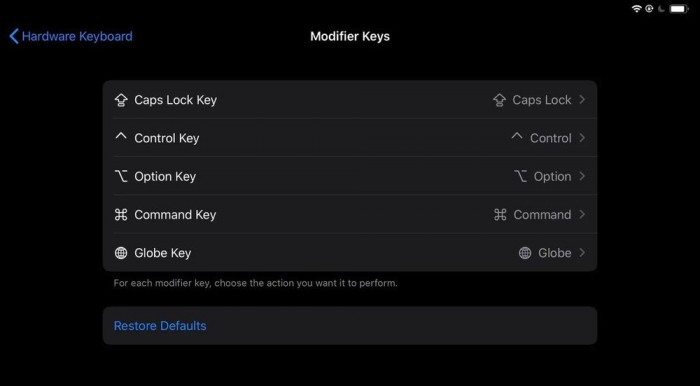 正如开发人员Steve Troughton-Smith所指出的那样,似乎有一个新的选项可以重新映射连接到iPad的键盘上的硬件键。
