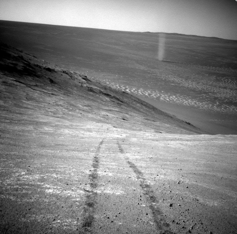 MRO不是寻找尘埃魔鬼的唯一火星机器人。2016年,“机遇号”火星探测器曾捕捉到了尘魔的美丽地面视图。
