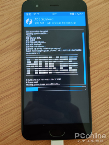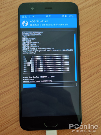 之后网页中会显示刷机的进度条,手机的TWRP Sideload界面也会显示刷机的进度条等信息,耐心等待刷机完成即可。