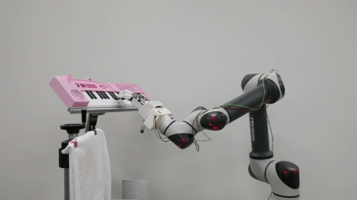 此外,该团队还为机械手安装了指尖、手指和手掌上的力和触觉传感器,使其能够在手接触到不同物体时测量并调整力的方向和大小。因此机械手的功能非常强大,例如倒一杯水,用剪刀剪纸,捡鸡蛋,甚至在钢琴上弹奏曲目等。