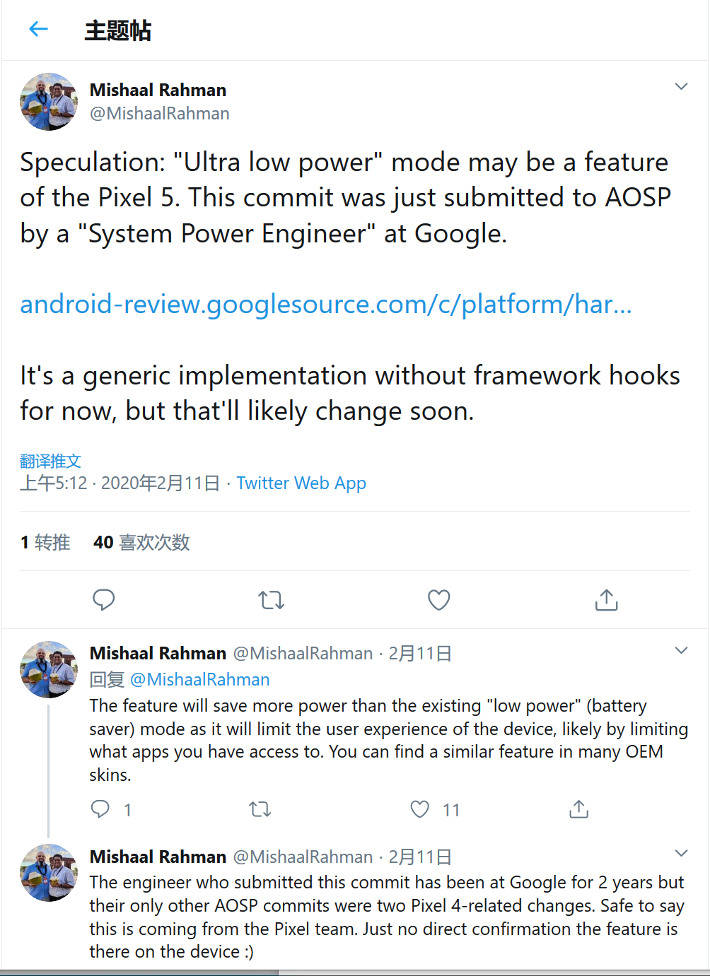 尽管有关提交的内容本身与Google的Pixels无关,但Rahman指出,提交提交的工程师以前只能处理与Pixel相关的代码。尽管该代码并没有指定任意设备,但根据以往行为可能会在Pixel上首发。