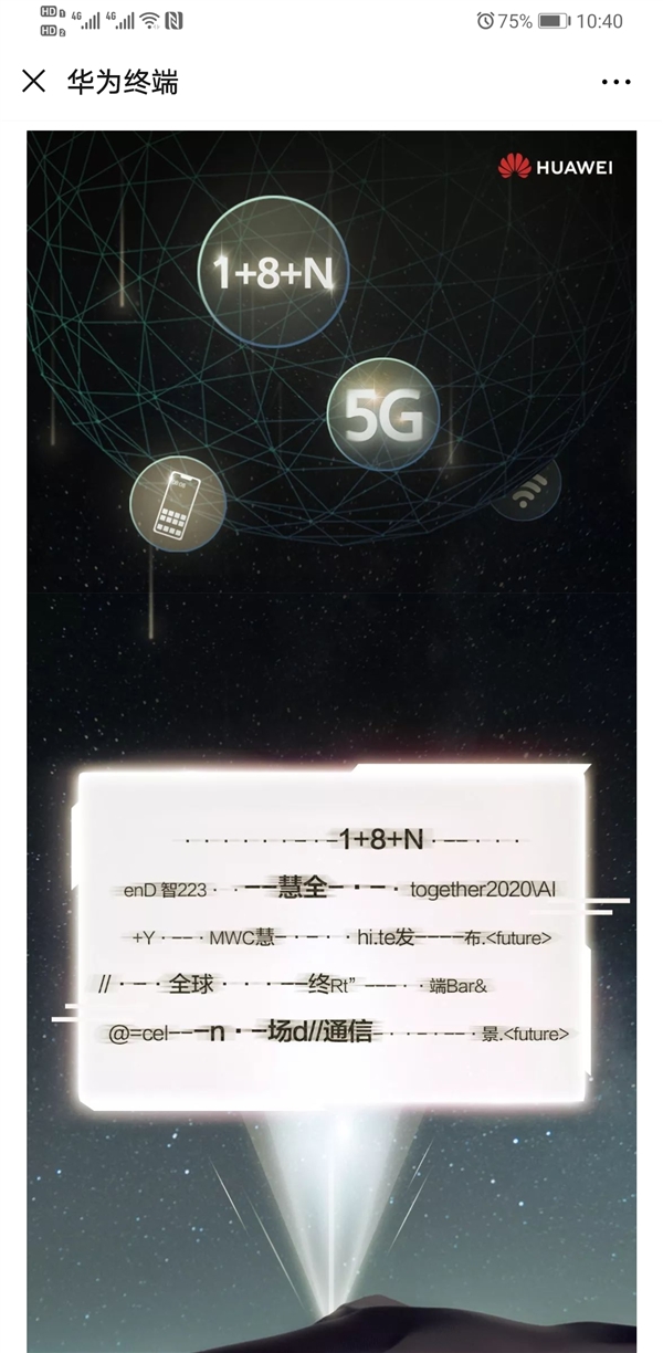 有意思的是,预热图中还出现了一段神秘代码,其中包含:1+8+N、5G、通信、慧全、景等关键词。暗示此次发布会围绕“全场景智慧”展开。