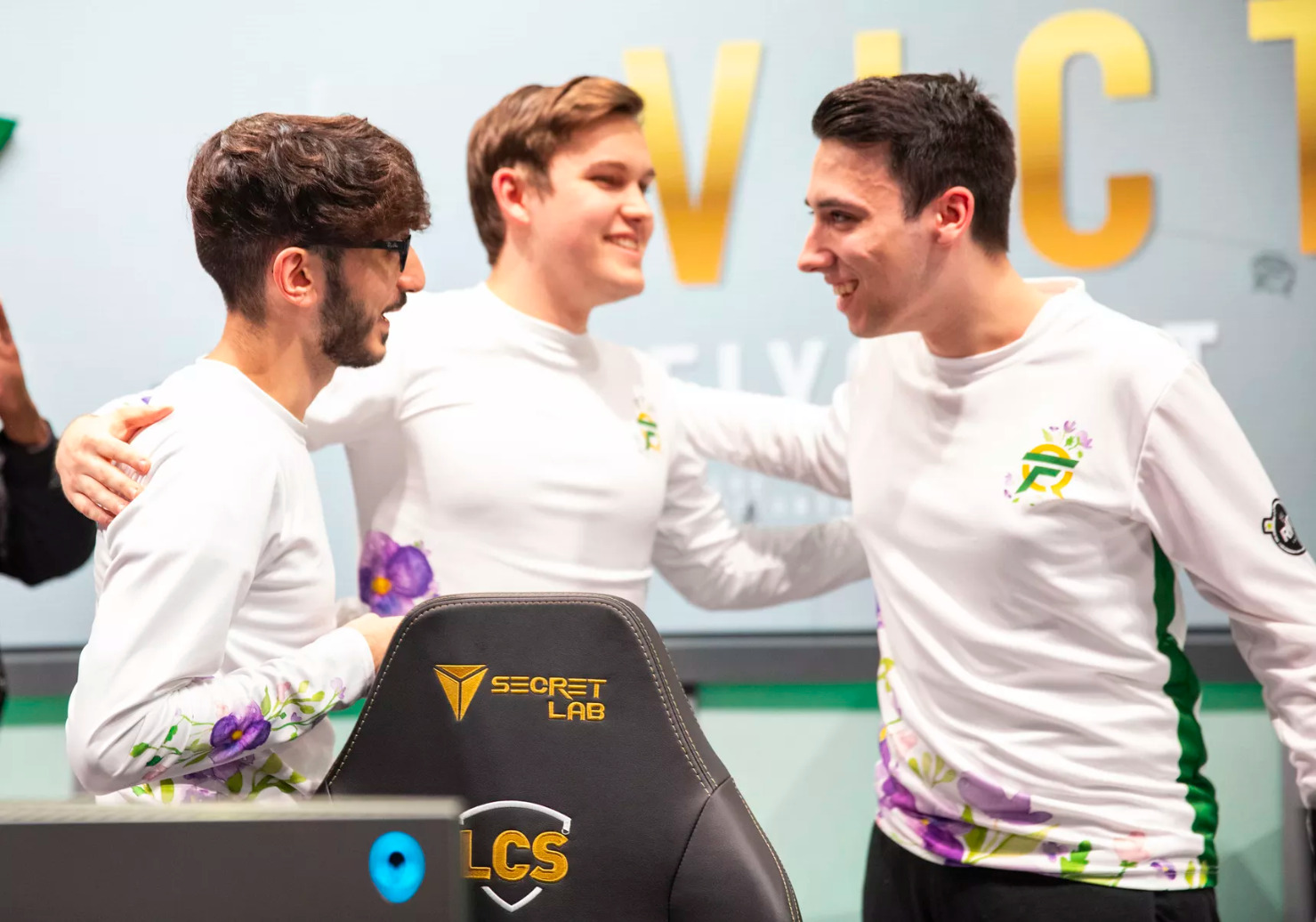 花通常是人们在电子竞技领域不会看到的东西。战队和队员通常都会展示一种好斗的形象,或是会看到许多手臂交叉、弯曲二头肌的宣传照或印满能量饮料和专业游戏装备等广告的运动衫。但FlyQuest看起来都不是,这支战队此次带来的战衣则是是干净的白色长袖衬衫,底部还有手工绘制的紫色花朵,甚至在胸前的FlyQuest logo上也加入了一些绿植元素。