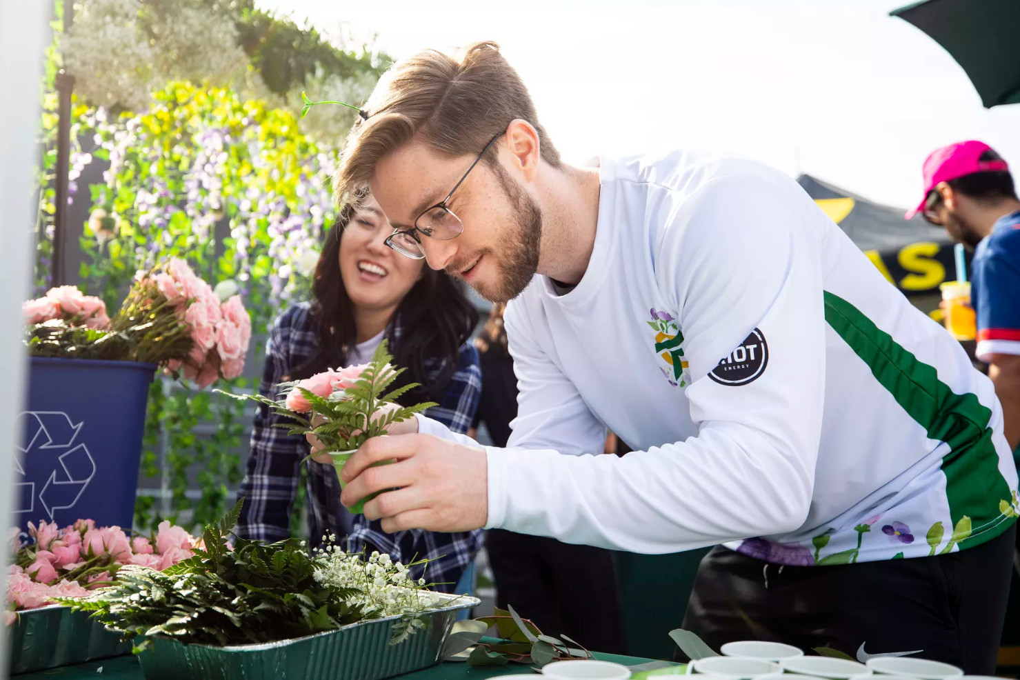 在那里,你会发现粉丝、选手乃至CEO都在练习日本插花艺术。据悉,这是该战队一个名为go green的计划的一部分,希望借此类引起更多人对环保事业的注意。
