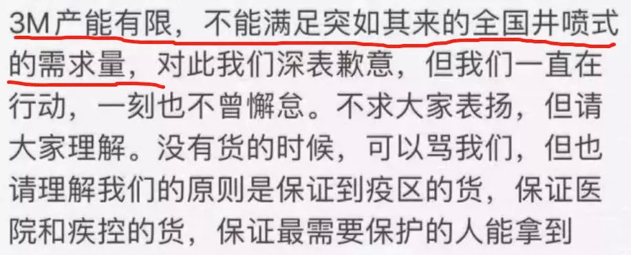 可即使赶工在做了,原料、加工、流水线、封装等一系列的操作也要一步步来,再赶也没办法说有就有,就算产品线稳如日化品大佬 3M 这样的大公司,产能同样是有限。
