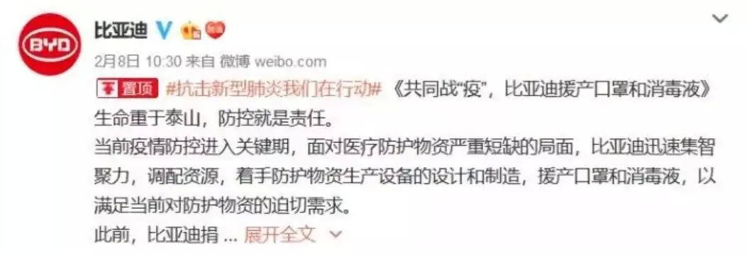 同样牛掰的还有另一家国产车企——比亚迪,他不仅做口罩,还有办法做消毒液?!