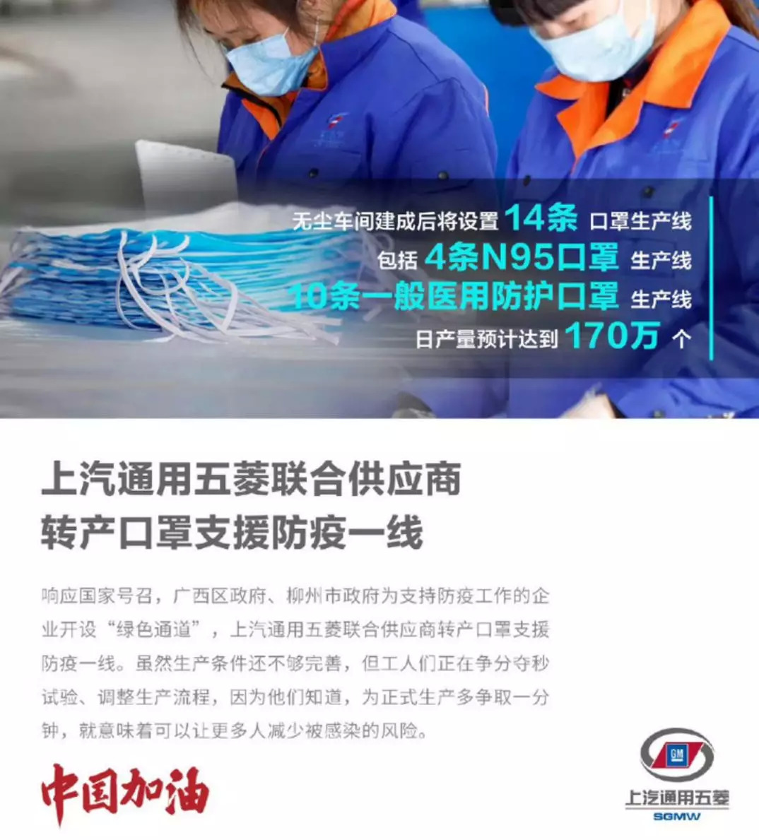 除了鞋厂之外,缔造了秋明山速降传说的五菱宏光车厂也有自己的故事要说一说,面对口罩生产的缺口,一脚油门,花了 5 天把无尘车间改造成了口罩生产线,甩得进口车商们连车尾灯的残影都没摸到。