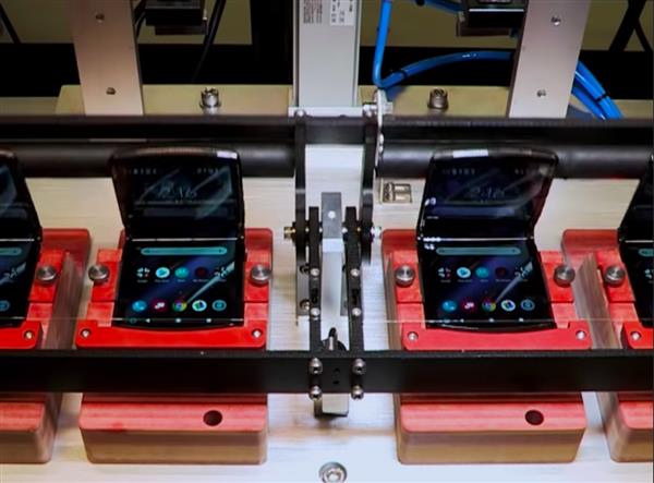 此前,外媒CNET利用工具对手上的摩托罗拉Razr进行了折叠测试,并且直播了整个过程。在他们的测试中,仅仅经历了27000次的折叠后,Razr就无法完全闭合了,连带他们的测试机器FoldBot也被弄出了问题。