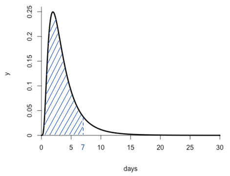 其实大可不必如此恐慌,几乎所有涉及到群体生理乃至其他特征的结论,都具有一定程度的不确定性。要更好地理解这些结论的意义,需要对统计学知识有个基本的了解。在流行病学中,疾病的潜伏期通常可以用对数正态分布来近似,这种近似的合理性往往可在病原体繁殖动力学上得到一定解释。简单来说,这相当于假设 log(潜伏期) 服从正态分布。对数正态随机分布都存在一个长尾,尽管长尾部分的概率很小但不是零,如果样本量足够大,长尾部分的小概率事件还是有可能发生的。
