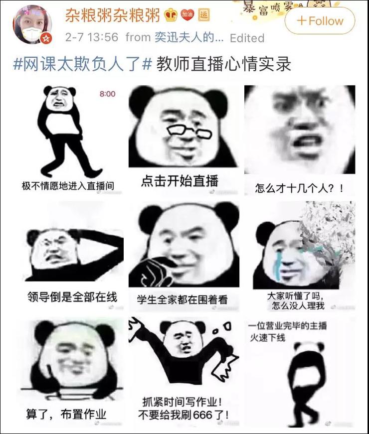 经过一番准备工作和心理建设后,老师们硬着头皮打开了直播间,却发现网课简直就是魔幻本幻。