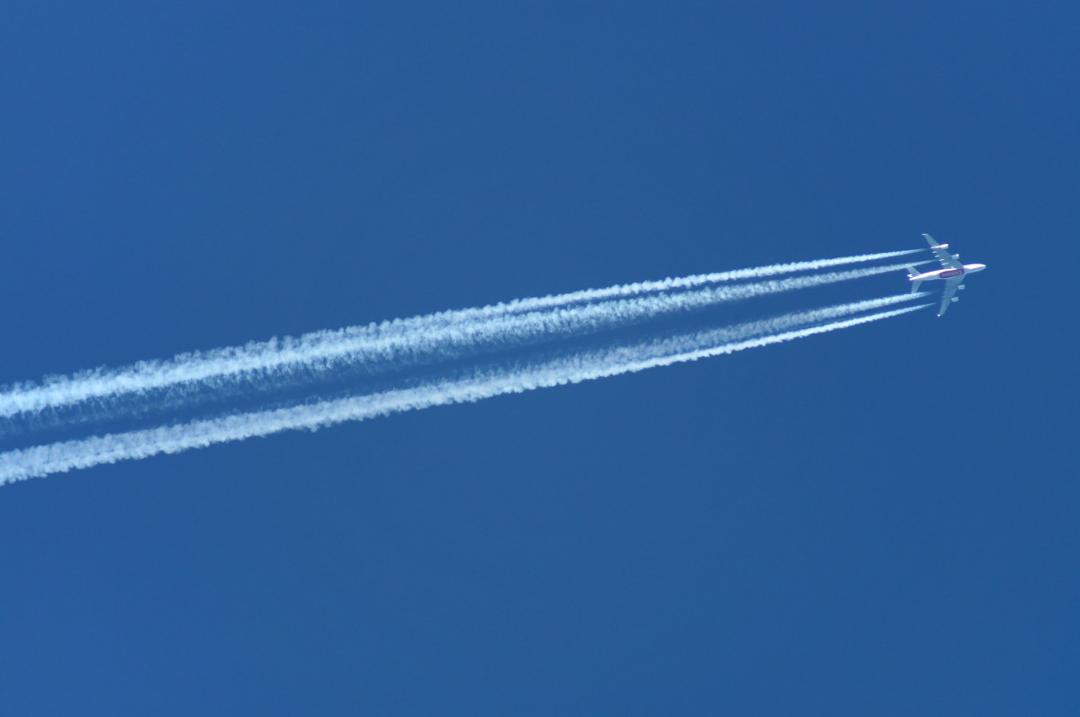 凝结尾迹,又叫做飞机云,它由于冷空气中的水分凝结在热飞机废气中的黑碳颗粒上而形成的冰颗粒。人们可以在从地面上看到白色、蓬松的飞机云,而这个过程通常只持续几分钟。