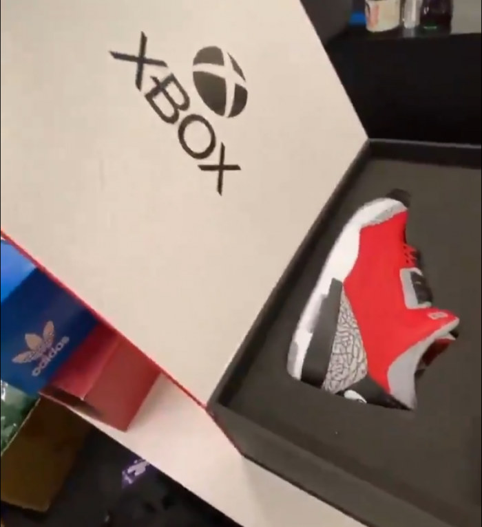 问题出在套装中的AJ鞋上,不少粉丝一眼就认出是一双红水泥配色的AJ3,也就是说——并不是专门为Xbox设计的新品。这令不少粉丝感到彻头彻尾的失望,认为双方卖了个大关子最后却拿已经卖出去无数双的商品凑数毫无吸引力。