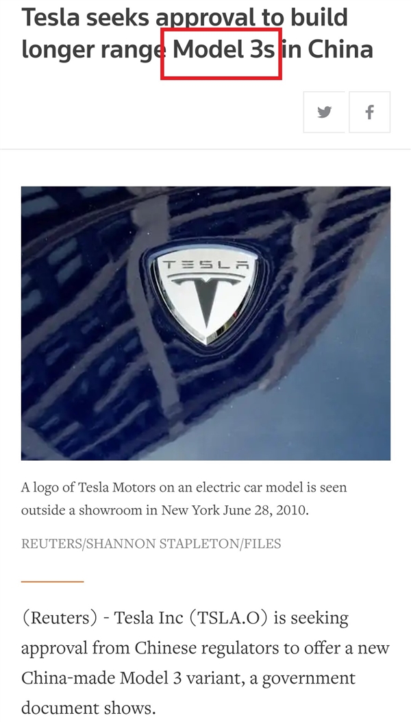 对此,我们也向相关消息人士进行了求证。随后,业内消息人士证实,Model 3s车型确实为媒体误传,应该是有媒体把路透社文章标题里的复数翻译成型号了,故也不存在特斯拉Model 3s这一车型。