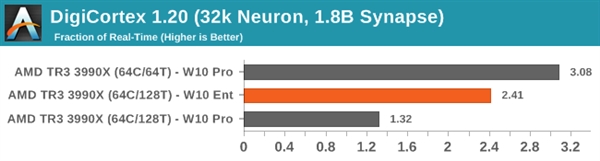 实测显示,在很多基准测试中,禁用多线程后,3990X的性能反而提升了。