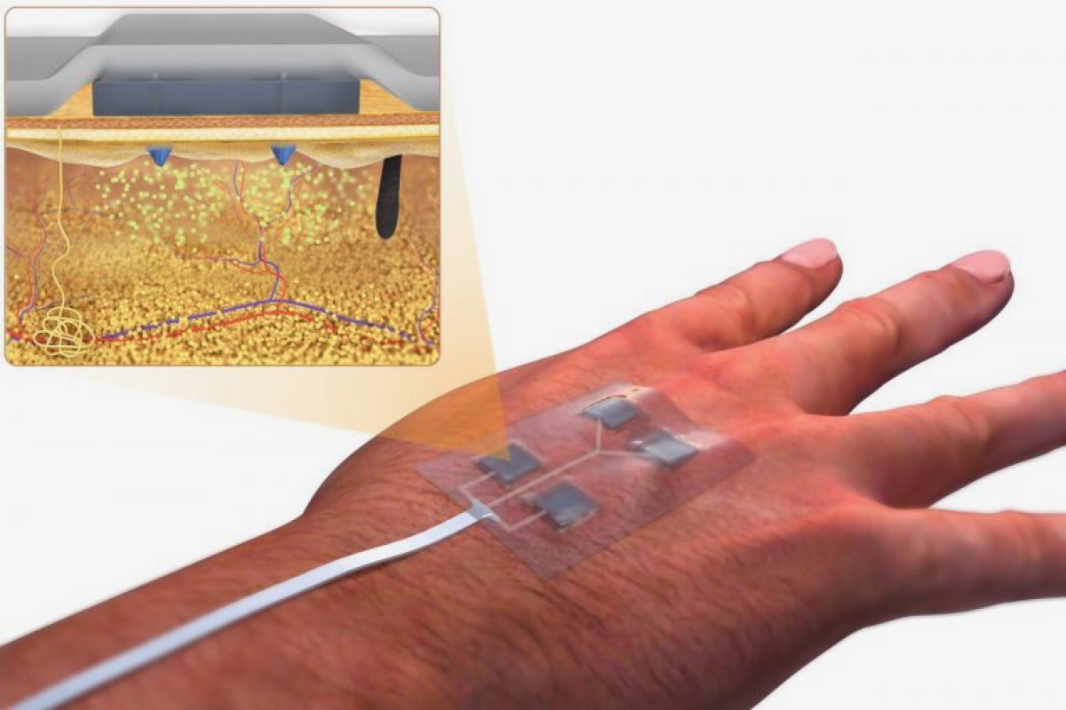 它配备有所需药物的小型储存器。当由智能手机大小的无线控制器有选择地激活时,这些容器底部的微型针将药物输送到伤口相对较深的位置。该过程据称是相当轻松的。