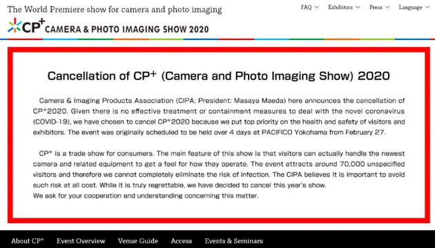 日本国际摄影器材与影像博览会(CP+展会)宣布取消