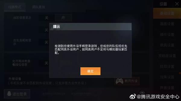 说明:使用正规外设进行游戏,会在连接外设后收到匹配隔离的提示: