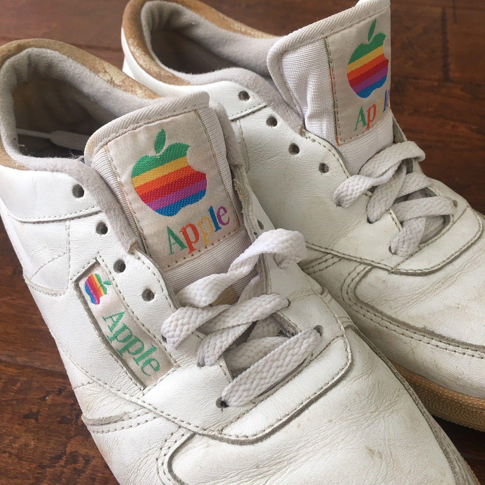 此外,2018年1月还曾出现过另一个版本的苹果运动鞋,并在eBay上以6万美元的价格开始竞拍。根据当时卖家的说法,这双鞋具有独特的彩虹徽标,并且具有相当好的划痕:“我的这双鞋并不是滞销商品,鞋子上的痕迹是重点”。据悉,这双鞋最初是在一家慈善商店被发现,价格为50美分。