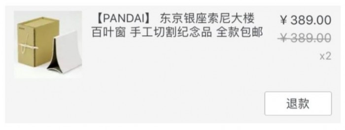 还一丝不苟的将大厦外壁的百叶窗成片切割,做成工艺品出售给索粉,某宝售价 389 人民币。