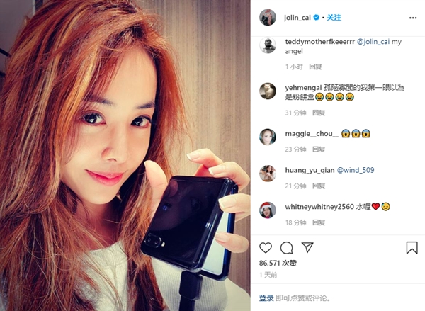 去年4月份,三星Galaxy Fold刚在美国开订,蔡依林就拿到了真机,有媒体感慨“真三星铁粉”。
